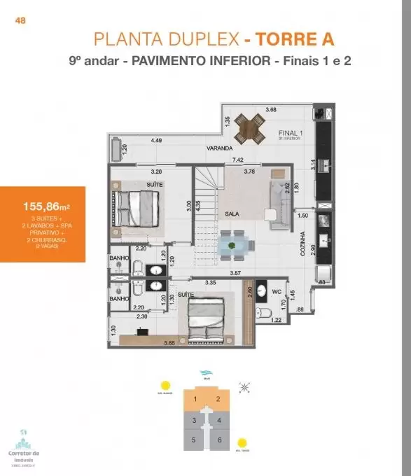• Lazer no térreo: Salão de Jogos com Brinquedoteca; Playground; Salão de Festa; Deck Seco;