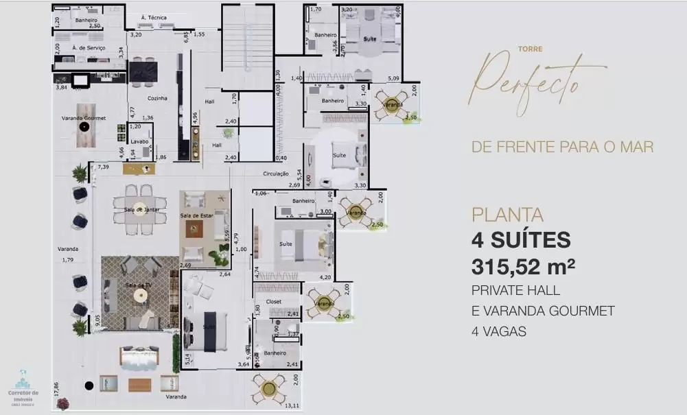 Torre Perfecto com 315.52m² 4 Quartos com suítes